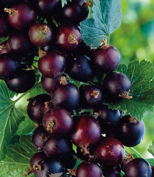 Plody sú čierne, lesklé bobule veľkosti menšieho egreša, usporiadané do menších strapcov. Chuť je harmonická – sladká, s jemnou kyslosťou, a pripomína kombináciu čiernych ríbezlí a egreša. Bobule dozrievajú v júli až auguste.