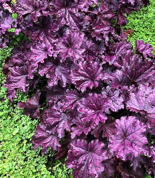Heuchera 'Forever Purple' je trvalka charakteristická svojimi atraktívnymi fialovými, lesklými, srdcovitými listami, ktoré zostávajú tmavofialové aj počas celého leta. Biele kvety sa objavujú na stopkách.
